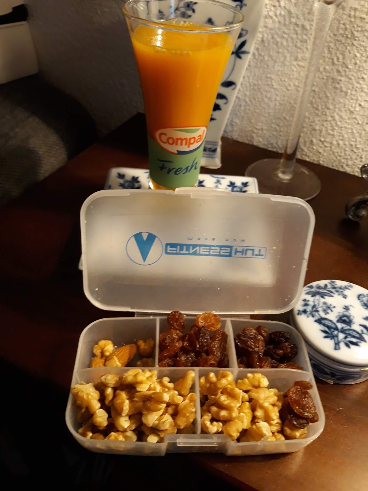 Mais um dos meus maravilhosos snack´s frutos secas e um copo de néctar. Hoje tenho de ter mais cuidado porque o néctar traz-me um aporte diferente de calorias.